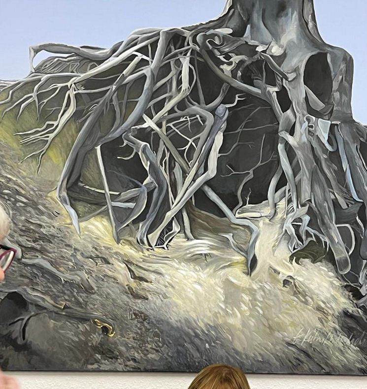 Erika Kühn berichtete über ihren Werdegang zur Künstlerin/Malerin. Schon als Kind war sie häufig im Atelier ihres Vaters anzutreffen, schaute ihm bei seinen Arbeiten zu. Sie studierte an der Folkwangschule für Gestaltung in Essen Grafik und Design. Arbeitete dann als freie Malerin, Illustratorin, Layouterin, nahm Auftragsarbeiten für Werbeagenturen an und war als Portrait-Malerin erfolgreich - und das bis heute.