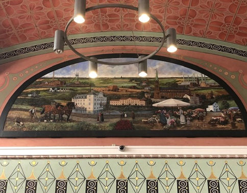 und entdeckte – neben den kleinen Köstlichkeiten bei der Einkehr im liebevoll geführten Café „Kultur-Häppchen“ - vor der Rückfahrt noch ein Kleinod: die mit Deckenfresken im Jugendstil verzierte außergewöhnliche Wartehalle im Bahnhof Borbeck.