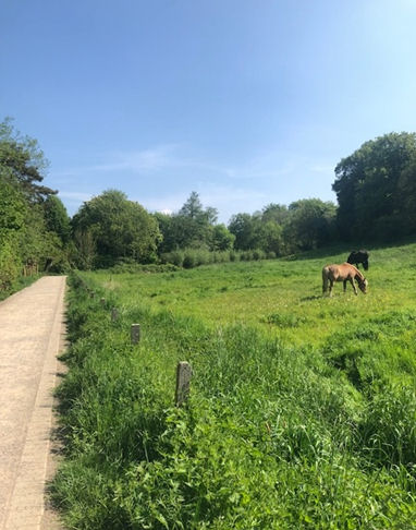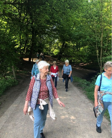 Durch’s Horbachtal und Hexbachtal wanderte die Gruppe L um Ursel Hirdes bei schönstem Wetter 10 km am 06.05.2022 vom Mülheimer Hbf zum Schloss Borbeck,